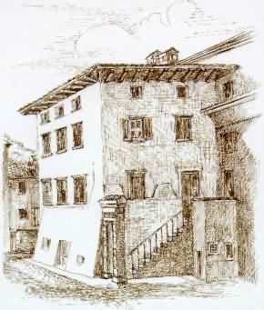 From the Renaissance period only a large building consisting of two bodies forming an overturned L remained. Within this "L" was a large vegetable garden (Ortaglia), thus giving the district its name.
