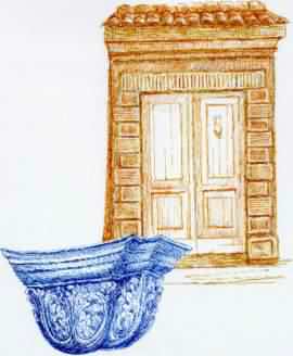 On the first floor is a large room, now owned by the Town Council, with a vaulted ceiling and suspended column heads adorned with Acanthus leaves in 16th century style.